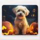 Halloween Yorkipoo With Pumpkins Scary Mouse Pad