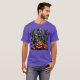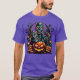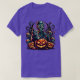 Halloween zombie and his zombie cat with skulls and jack-o'-lanterns.