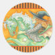 WITCH RIDING HER MAGIC GREEN HORSE STICKERS Round SHEET Orange/Black Stripes ...Look For Matching Items Susan Brack Design