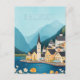 This travel postcard, in digital illustration style, showcases a fairy-tale like scenery of Hallstatt, Austria.