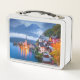 Nice white lunchbox for kids with Hallstatt, famous village in Alps Mountains, Austria travel place.
