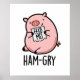 Ham-gry Funny Animal Pig Pun features a cute pig with a sign that says "Feed Me". Perfect pun gift for family and friends who love cute pig ham puns.