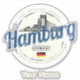 Hamburg Germany vintage souvenir for city and vacation. Hamburg port city of Germany with skyline and Reeperbahn retro design as souvenir for city holiday. Lifestyle for urban backpackers and Hamburg City Germany trip.