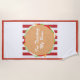 This red and white beach towel features a hamburger with all the fixings on a sesame seed bun. It says "I'm toasting my buns" but you it can be personalised. The hamburger is set against a red and white striped background. A Cheerful and fun design.