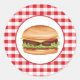 Hamburger Fast Food Illustration On Red Gingham Classic Round Sticker
