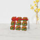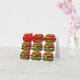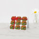 A graphic illustration of hamburgers with a gift ribbon on a greeting card for a hamburger gift. Original artwork: Copyright Charmaine Paulson