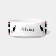 Cat dish has White, black and pink stripe with cat graphics, personalised with your cats name. Just add your cats name at the personalise option. His/her name will appear between the two cat graphics. HAMbyWhiteGlove.