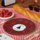 HAMbyWhiteGlove aka HAMbWG designed, Colourful Christmas Trees melamine dinner plate.Red and Dark Red.