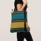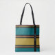 HAMbyWhiteGlove tote bags -Teal and Caramel block stripes and with smaller mixed stripes in between, and a black stripe with our logo in white sideways (thin swiss font). A great modern, fresh look.