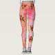 HAMbyWhiteGlove aka HAMbWG Hawaiin themed leggings with a orange and pink fresco background, hibiscus flowers all over, and the Hawaiin words for Love, Spirit and Family (Aloha, Uhane & Ohana)