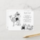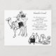 An illustrated limerick from a 1908 children's book. In the first illustration, Hamel, who has a long beard and is wearing a turban, stands on tiptoe on the saddle of his camel. He has a saucepan in one hand and with the other he is plucking an egg out of a bird's nest. The camel is weighed down by luggage, pots and pans and a black cast iron stove. In the second illustration, they are seated on the sand surrounded by platters bearing eggcups with boiled eggs in them and Hamel is feeding his camel with a spoon.