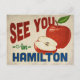 A charming Hamilton Ohio vintage travel postcard featuring a lovely red apple, along with fun retro style text that says, "See you in Hamilton"