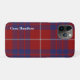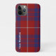 Stylish iPhone 11 case mate phone case done in the traditional red, white, and blue Scottish tartan plaid of the Hamilton clan. White text running vertical, on the left side, is ready to personalise. Stylish and great way to protect your smart phone, and makes a great gift idea.