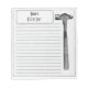 Grab your favourite pen and start filling out your fix it list. Personalised to do list note pad complete with lines and a graphic of a vintage hammer. Fill in the top logo section with your favourite handy man's or handy woman's name. Great for man cave, workshop, honey do list and shopping list to the hardware store or grocery store.