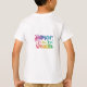 The t-shirt feels and looks great quality, a good thick cotton. It will be a little big for my son, but that means he will be able to wear it and not out grow it too soon. The print was as described on the order when personalised. True size, shape and colour T-shirt- thanks.