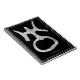 Hammered silver stylised Uranus planet symbol in a fine silver double line frame. This notebook or journal or writing pad has a title of The Journey, which can be changed to reflect your own story.