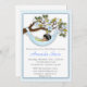 This baby shower invitation features an African American newborn baby boy nestled in a hammock swinging from a magnolia tree. This unique baby shower invite is simply precious.