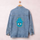 Hamsa Hand Greek Evil Eye Blue Denim Jacket
