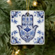 Hamsa Hand Symbol - Blue and White Hand of Fatima Ceramic Ornament