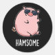 Hamsome Funny Pig Pun Dark BG Classic Round Sticker