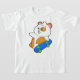 The t-shirt feels and looks great quality, a good thick cotton. It will be a little big for my son, but that means he will be able to wear it and not out grow it too soon. The print was as described on the order when personalised. True size, shape and colour T-shirt- thanks.