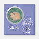 Round Photo Frame Customisable Pet Memorial Frame a photo of a special friend and create a cherished memory. This hamster themed photo frame magnet has a round hole to add your hamster's picture and you can type in the name of your furry friend underneath the photograph. The white ink drawing features a cute hamster. Available in a blue background with a silver look frame.