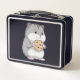 This is a standard metal lunchbox that appears to work just fine. We designed this box ourselves with an uploaded photo and custom text on the front and back. It looks absolutely beautiful except the front of the lunchbox is not centered like it shows in the photo. The print borders don't align with the inset flat part of the box where the preview photo online showed it perfectly centered in there. The back looks nice and centered though.
