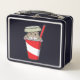 This is a standard metal lunchbox that appears to work just fine. We designed this box ourselves with an uploaded photo and custom text on the front and back. It looks absolutely beautiful except the front of the lunchbox is not centered like it shows in the photo. The print borders don't align with the inset flat part of the box where the preview photo online showed it perfectly centered in there. The back looks nice and centered though.