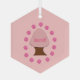 This ornament features a graphic image of a cherry tree covered in pink blossom and surrounded by a circle of pretty cherry blossom flowers known as Sakura. This design has been created to celebrate the Japanese Hanami festival and contains the word Hanami in the cherry tree. The celebration marks Spring as people get together to picnic underneath the blooming cherry trees.