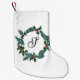Hand-draw Christmas wreath, customisable initial Small Christmas Stocking