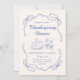 Blue & Cream Custom Trendy Quirky Hand Drawn Doodle Turkey Wine Glass Thanksgiving Dinner/Party Invitation.