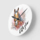 Hand drawing horse with plants and flowers throw p round clock