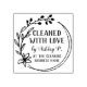 Cleaned with love stamp with a simply drawn berry leaf and flower wreath. Add your name in a charming script.
