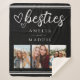 Hand Drawn Besties Photo Collage Black and White Sherpa Blanket. Cherish your dearest friendships with this elegant Sherpa blanket, designed to keep you warm while celebrating your bond. The deep black background is adorned with a beautiful white script "Besties" and a charming hand drawn style hearts, framed by elegant stripes. Below the text, a customisable photo collage allows you to showcase 3 of your favourite moments together. This cosy throw is the perfect way to snuggle up and reminisce about all the adventures you've shared with your best friend, adding a personal touch to any room. Makes a sentimental gift for your best friend for their birthday or Christmas.