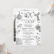 The clean, white background is accented with classic black doodle details including a disco ball, graduation cap, diploma, bow, books, florals, and celebratory icons — creating a fun, confident, and feminine aesthetic perfect for high school, college, or university graduates. The front layout highlights all party details in a clean, easy-to-read format, making it both stylish and practical.