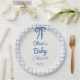 Hand Drawn Blue Gingham Bow Baby Shower Paper Plate