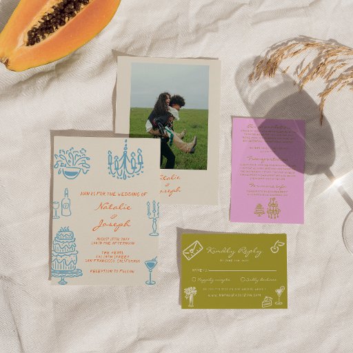 Orange Blue Hand Drawn Wedding SuiteDesigned by marouane boukouyen