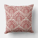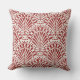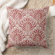 This throw pillow features a hand drawn art deco scallops or fan pattern with a distressed vintage texture in red on cream for a bohemian look.