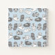 Modern personalised baby book with an illustrated black and white pattern of different styles of baby booties on a pastel blue background.