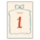 Hand Drawn Bow Frame Orange Blue Retro Wedding Table Number