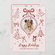 Hand-Drawn Bows Pink Red Photo Christmas Happy Holiday Card