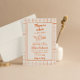 If you looking for an elegant unique and easy customisable baby boy shower invitation this is perfect for you. As you see it features a retro handwritten script of a bun is in the oven in orange . And hand drawn cupid angel carrying a bread piece illustration. And orange hand drawn chequered squares. All orange on cream background. Very easy to customise and use. So grab it and make your invites very engaged.