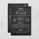Chalkboard-Style Hand Drawn Quirky Whimsical Wedding Details Enclosure Card. This fun and playful card features a black chalkboard background with white hand-drawn illustrations that look like real chalk sketches. A whimsical bow sits at the top, surrounded by cute elements like a champagne glass, wedding rings, dining flatware, a tiered cake, disco ball, and a “Just Married” car—adding a cheerful, lighthearted touch.