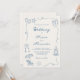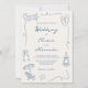 Hand Drawn Coastal Beach Dusty Blue Ivory Wedding Invitation