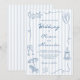 This fun quirky whimsical dusty blue and white coastal wedding invitation features a squiggle frame with hand drawn beach themed doodles, hand written typography, and light blue stripes in the background. The elegant yet casual nautical wedding design is perfect for summer seaside and beach destination weddings.