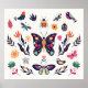 Hand drawn collection of spring summer elements with butterflies, birds and flowers