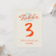 Modern and elegant whimsical bright orange and cream wedding table numbers. As you see it features a fun cream background with orange hand drawn script that matched the whole suite. And hand drawn couple swans shaping a heart.