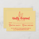 A simple and elegant calligraphy colourful retro wedding rsvp card. That has a vintage modern stylish yellow background with vivid red script and hand drawn bottle with two glasses. Minimalist and chic with handwritten lettering . It is all editable by clicking on the personalise button.