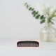 This modern business card features a blush pink background and hand-drawn comb illustration on the front. The back of the card has your name, job title, and all of your contact info. Background and text colors are all customizable.