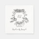 These stylish, black and white wedding or bridal shower napkins feature a hand-drawn illustration of a wedding crest with cherubs and flowers, and your initials or monogram in the centre. The text is trendy handwritten script for a whimsical and romantic look.
